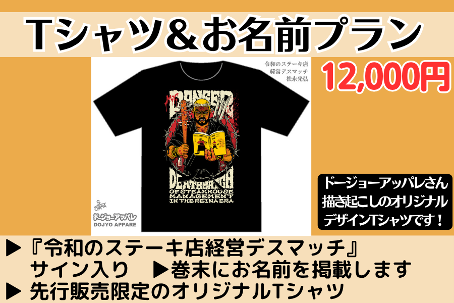 『令和のステーキ店経営デスマッチ』Tシャツ&お名前掲載プラン